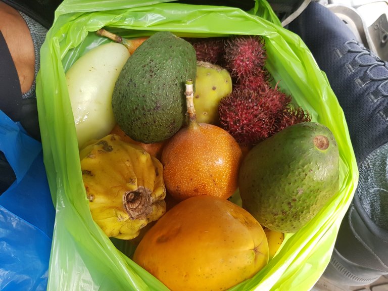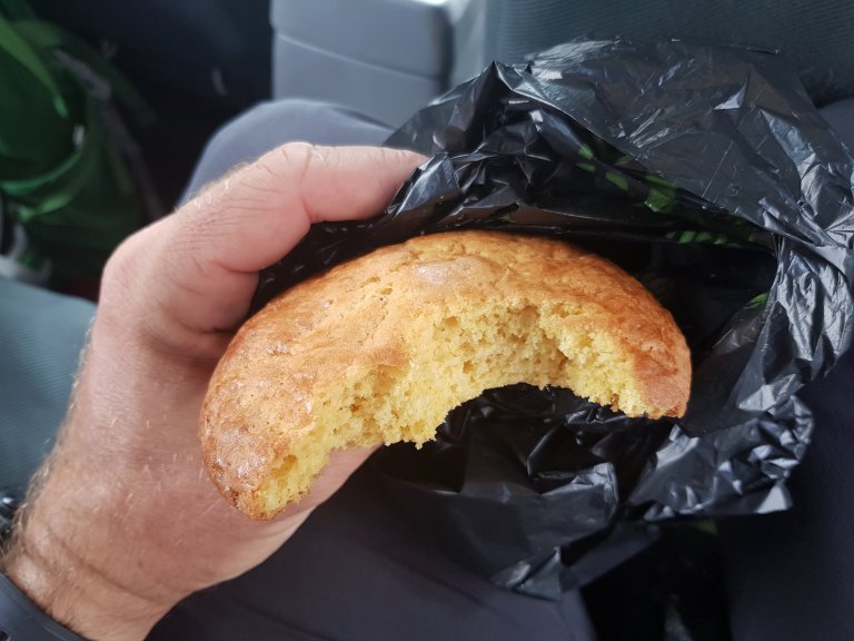 First we drive. As I am hungry, we stop buy a local market. I get fat booty.