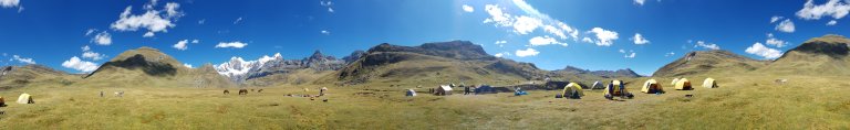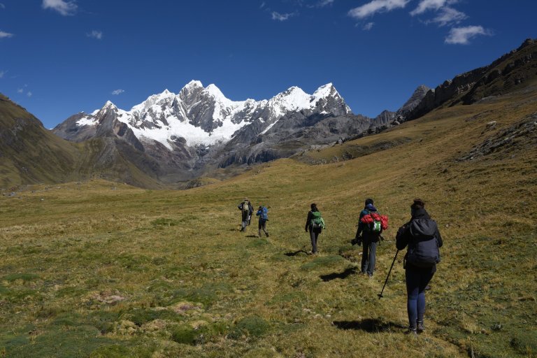 Leave early and head for Cacananpunta Pass (4,690m/15,387 ft) providing a spectacular view of the valleys and mountains. Trek on to Janca campsite (4,250m/13,944 ft) and arrive around lunchtime. This is a shorter day, to help with acclimatization, take a break or trek to the nearby Lake Mitucocha in the afternoon.”