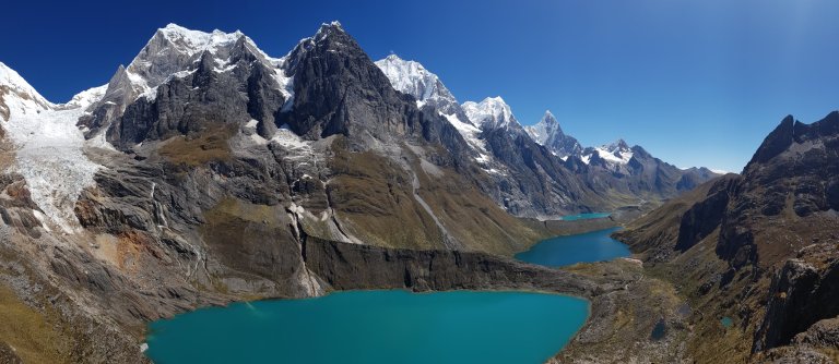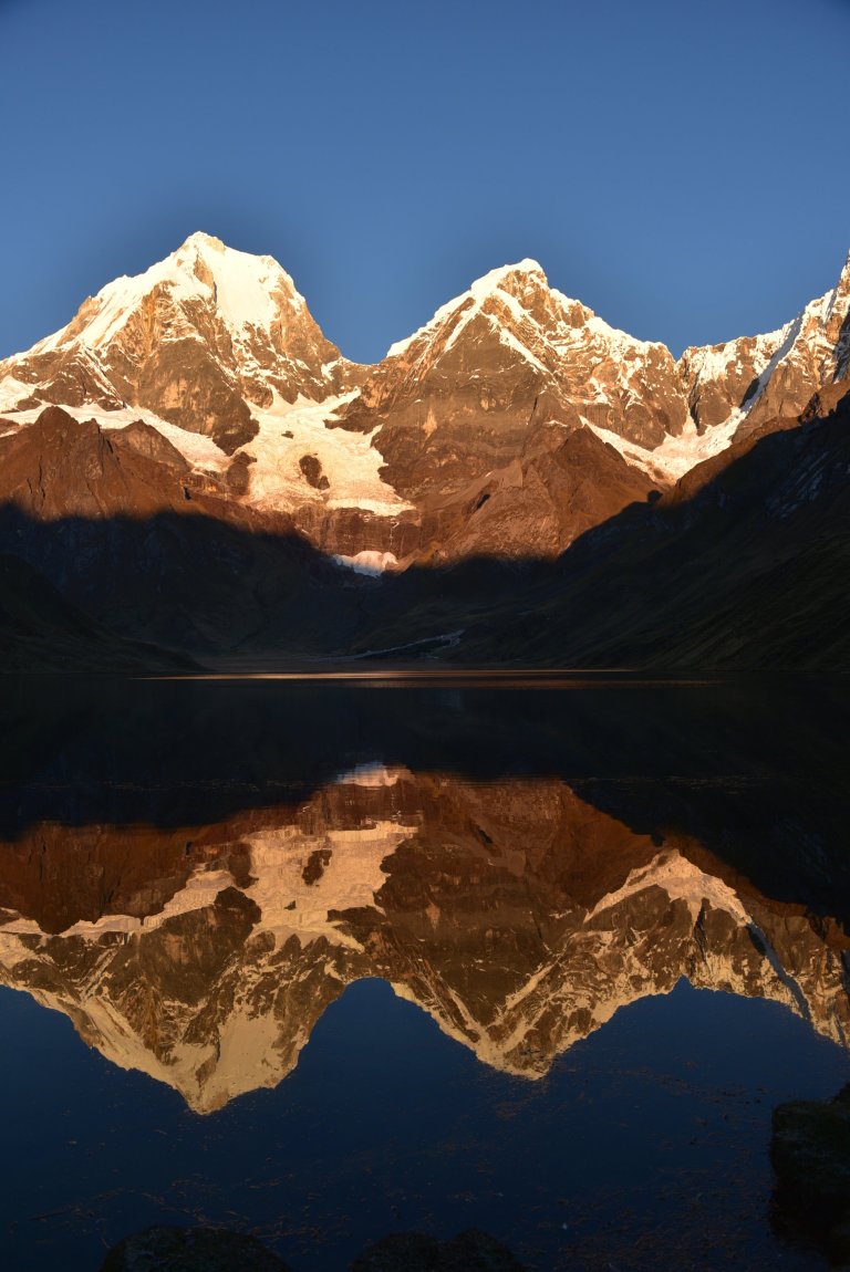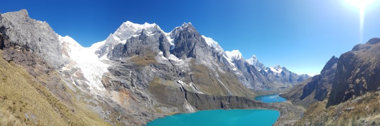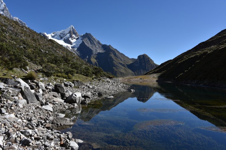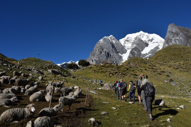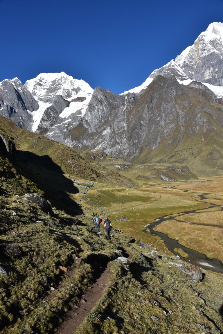 Today it is a long, gradual climb out of the valley with the impressive Mt Yerupaja as a beautiful backdrop. Followed by a steep, rocky climb up to the Siula Pass (4,800m/15,784 ft), made famous by Joe Simpson on his fateful hike. Descend down to the campsite for the night Huayhuash campsite (4,400m/14,436 ft).”