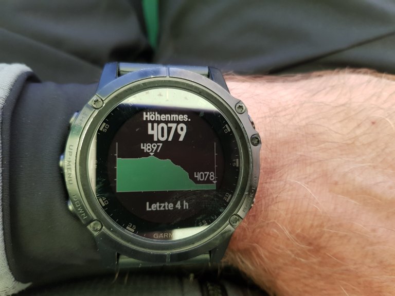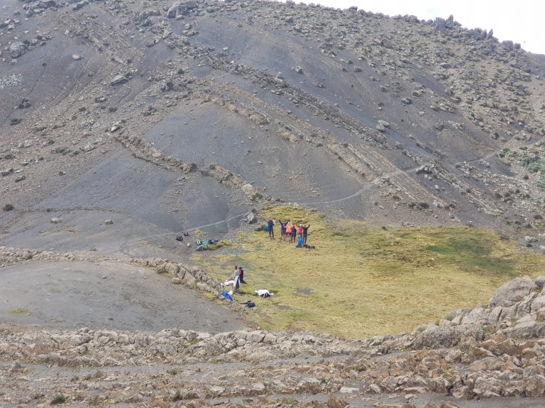Then we are on an edge and start the steep descent in zig zag to the valley of our last campsite.