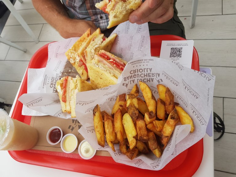 After our tour we walk around a little bit and go back to miraflores and there to Larcomar, where we have late lunch with Jeff at La Sangucheria.
