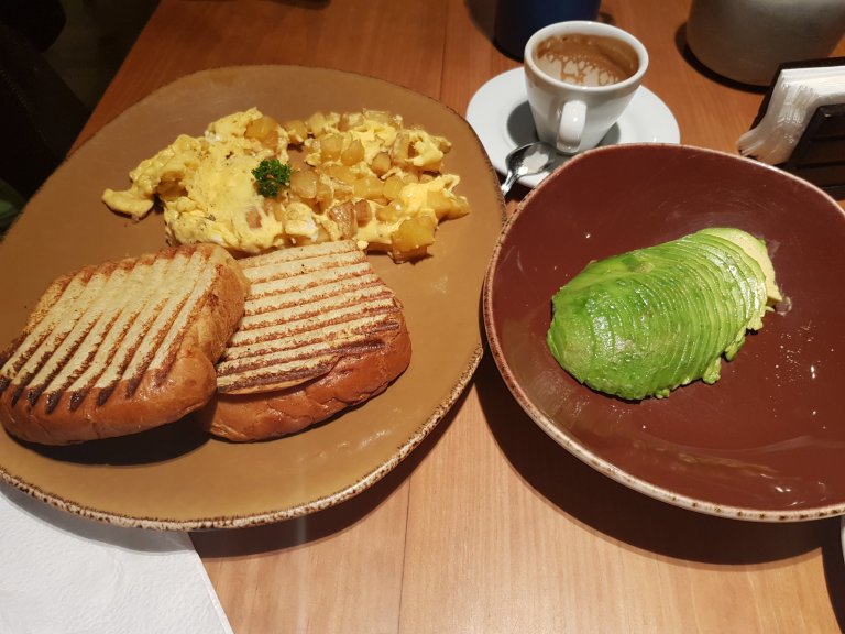 It is sunday. Traffic to the airport should therefore be no catastrophy. I have packed everything flight ready yesterday evening, so I just grab my luggage and go down to the lobby to check out. At the breakfast I just get a coffee. I remember at the airport Gaston has a breakfast restaurant.