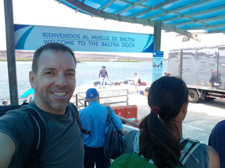 In front of the exit Indira is waiting, my Galapagos Chief Experience Officer. She looks like early 20s and is unquestionable local. We wait all together, then we take a bus to the ferry Baltra island – Santa Cruz. The ferry ride is 5 mins, then we take the next bus to cross santa cruz island to the city. Indira talks a lot.