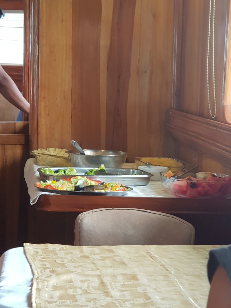 Lunch is small buffet style for 14 persons on the boat and ok.